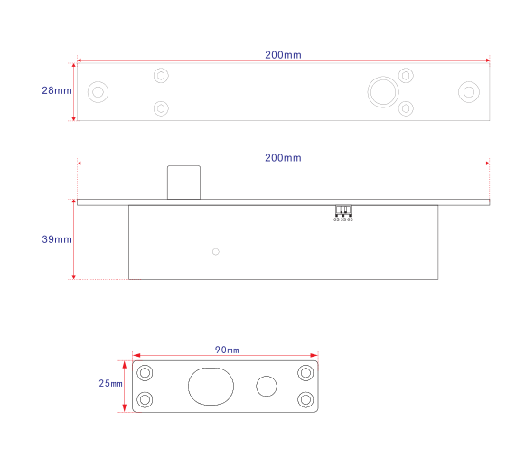 | ◆ 锁体尺寸:长200x宽28x厚36(mm) | ◆ 短板尺寸:长90x宽25x厚2(mm) |